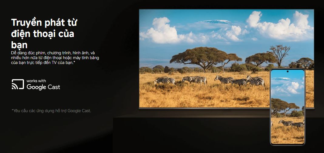Cho phép truyền nội dung từ điện thoại, máy tính bảng hoặc laptop lên TV chỉ trong vài giây. Rất tiện khi chia sẻ hình ảnh, video hoặc trình chiếu nội dung từ điện thoại.