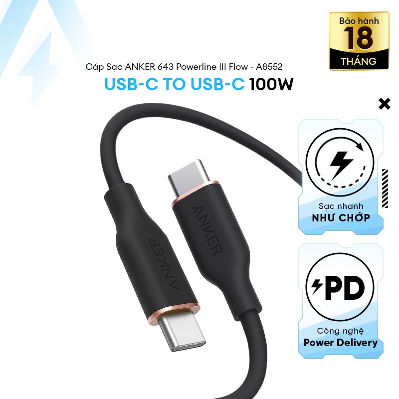 Cáp sạc Anker Powerline III Flow USB-C to USB-C (A8552) là dòng cáp cao cấp thuộc thế hệ thứ 3 của Anker, thiết kế đặc biệt với lớp vỏ silicone siêu mềm, mang lại cảm giác dễ chịu khi cầm nắm và hạn chế rối dây tối đa.
