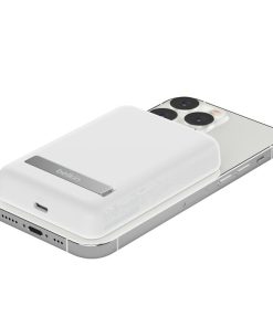 Thiết kế tích hợp chân đế kim loại gập, cho phép dựng điện thoại theo chiều ngang hoặc dọc — rất tiện khi xem phim, gọi video hoặc làm việc. Công nghệ pass-through charging giúp vừa sạc pin dự phòng vừa sạc thiết bị cùng lúc.