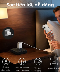 Anker Nano A2658 được thiết kế để mang lại sự tiện lợi cao nhất: khi cần sạc, bạn kéo nhẹ cáp USB-C ra, khi không dùng thì tùy chỉnh thu gọn lại — rất gọn gàng và sạch gọn. Củ sạc hỗ trợ chuẩn Power Delivery và PowerIQ 3.0, đảm bảo công suất 35W để sạc nhanh nhiều thiết bị như điện thoại, tablet, và các thiết bị USB-C khác.