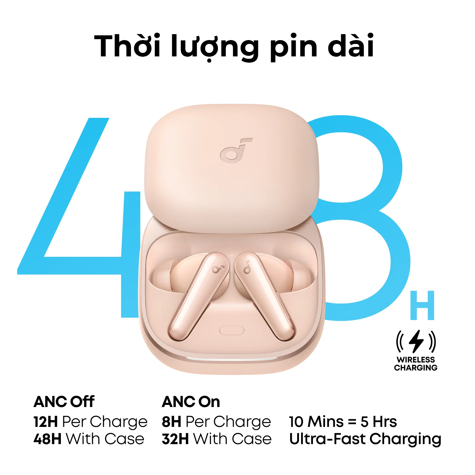 Khi tắt ANC: ~12 giờ nghe liên tục, tổng cộng 48 giờ khi dùng với hộp sạc.