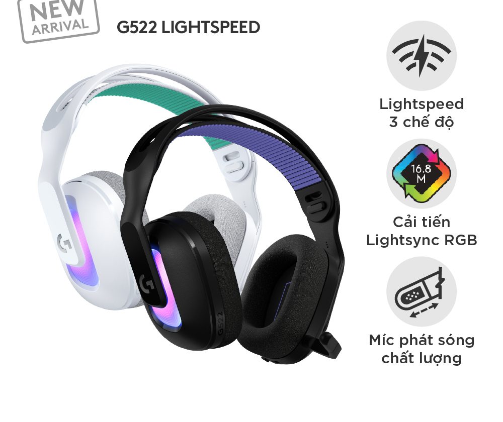 Logitech G522 LIGHTSPEED là mẫu tai nghe chơi game thế hệ mới từ thương hiệu Logitech G, nổi bật với công nghệ LIGHTSPEED Wireless, pin siêu lâu, và chất âm chân thực chuẩn eSports.